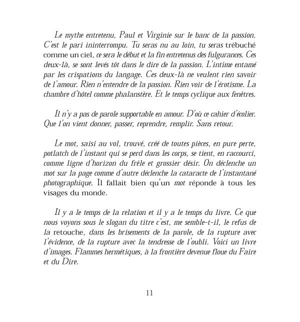 Ces deux-là n’ont rien inventé. Il y a certains écoliers que tout arrête. Des écoliers qui cherchent à dévisager le désir. Personne ne doit savoir. Ceux dont je parle ici ne voulurent rien concéder à la fin du hasard. […]